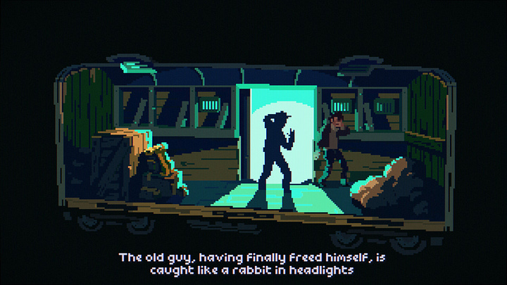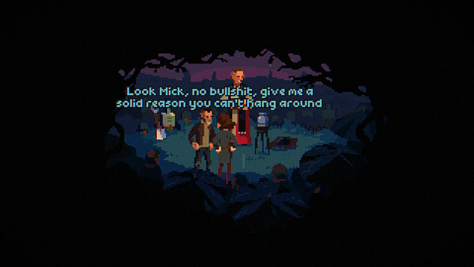 The pixel art is the first thing you notice, and for good reason. While it’s expertly crafted and wonderfully detailed, it’s the voice acting that earns The Drifter a place on my list of can’t-miss adventure games. Adrian Vaughan’s performance as Mick is masterful, adding so much color and depth to the character that I couldn’t put the game down, even though that meant playing in the dark at 1 in the morning, with the occasional flash bomb from my monitor as certain events occurred. I REGRET NOTHING. The soundtrack is also a thing of beauty, with heavy bass and melodies that ooze suspense.